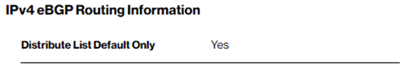 “Distribute List Default Only” allows only your default route to be advertised to Amazon. With this configuration your SCI Customer Connection will not exceed Amazon maximum received route limit of 100 prefixes for Amazon private virtual interfaces.