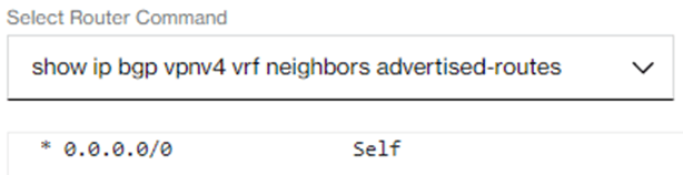 In case your Private IP VPN contains a default route then Verizon Dynamic Network Manager “Diagnostics” menu command “advertised-routes” will show the below result.