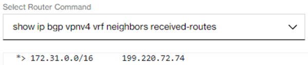 Note: In case the maximum advertised route limit of 100 is exceeded then Amazon forces BGP into state “Down” and the received routes command will show an empty result as well.