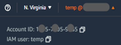 The required 12 digits Amazon Account ID can also be found by clicking on your IAM user name in the top right corner of the Amazon Web console like below example.