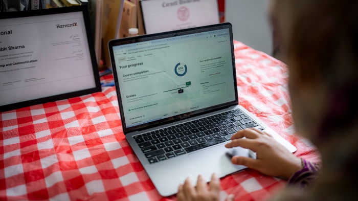 But transitioning to a new country and seeking a new career path meant starting from scratch in many ways. Without a work visa and daunted by the high costs of education, Sharna sought out alternative ways to further her learning. After completing multiple unpaid internships with software and technology corporations, Sharna explored free online learning opportunities as a way to pursue her academic goals.
