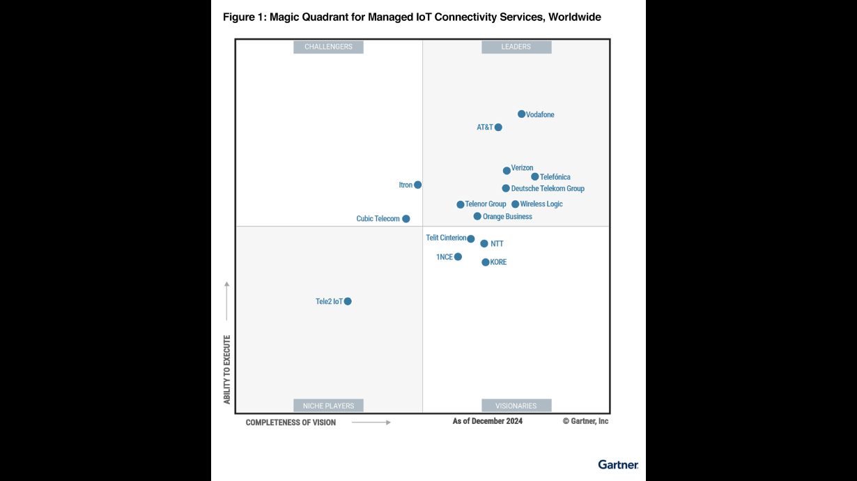 Gartner, Magic Quadrant for Managed IoT Connectivity Services, Worldwide; Pablo Arriandiago, Kameron Chao, Jon Dressel; March 11, 2025