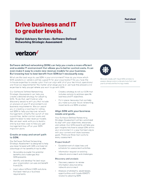 Our Software Defined Networking Strategic Assessment is designed to help you move forward with SDN and take full advantage of the benefits it has to offer.