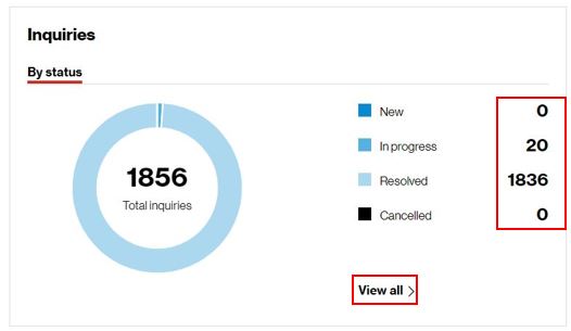 - Click on the count of accounts for each of the statuses to view the relevant list of billing inquiries and inquiry details, and take preferred action