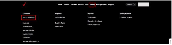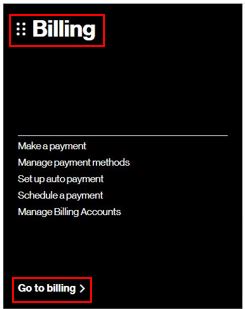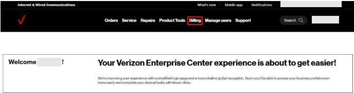Billing POD → Billing or Go to billing (black box from “Verizon Enterprise Center” home page)