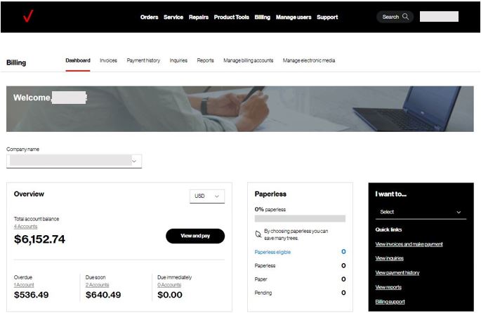 Verizon Enterprise Center makes it easy to view all of your Billing action items including payment-related functions in one place.