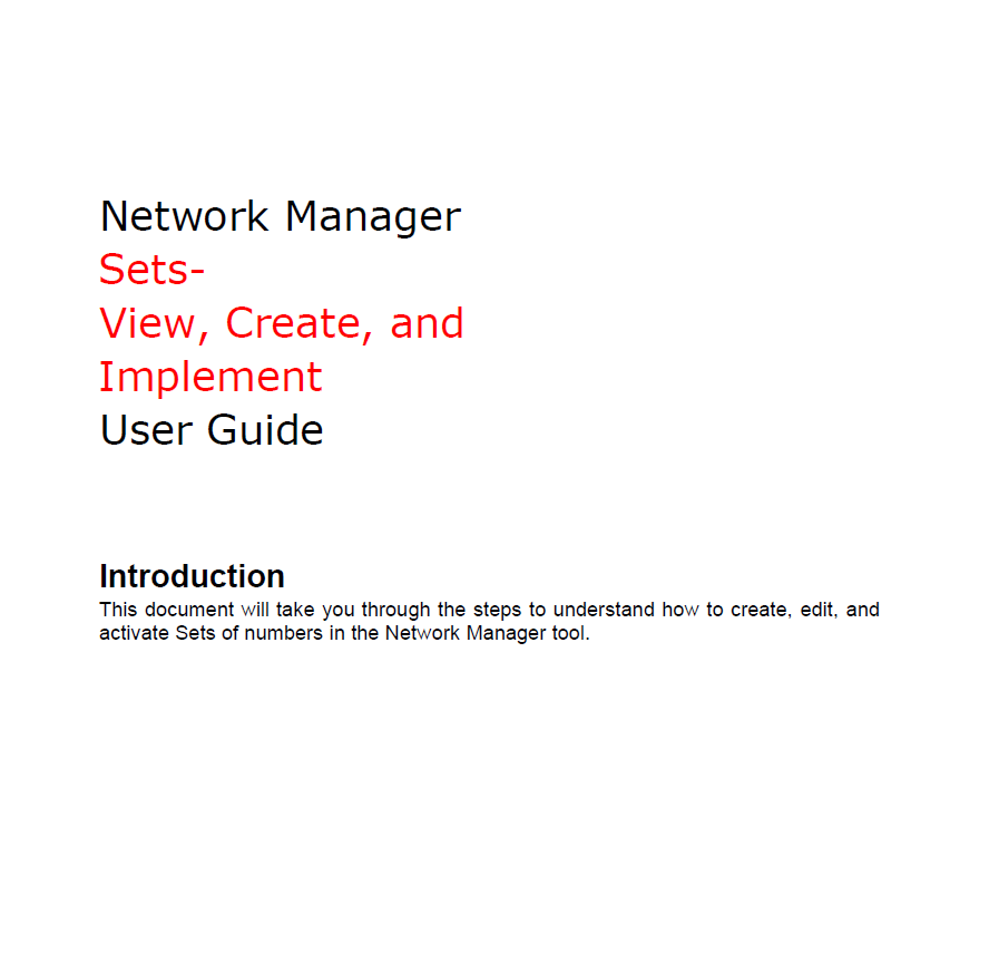 Network Manager Sets User Guide