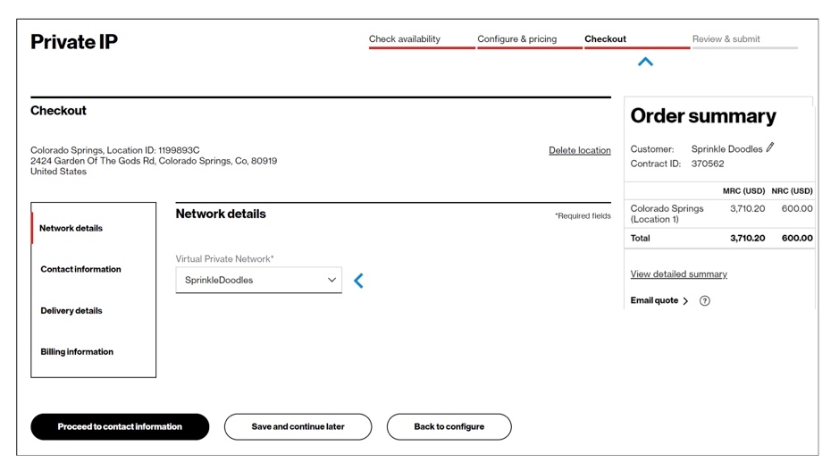 At present, the online automated ordering system only lets you order new Verizon Private IP locations for U.S. service addresses.