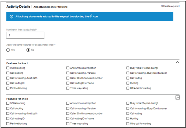 - Adding another Business Line (POTS)
