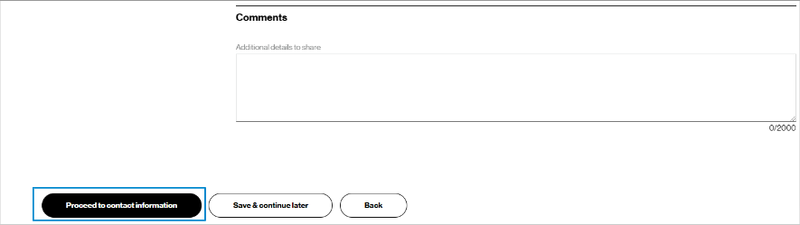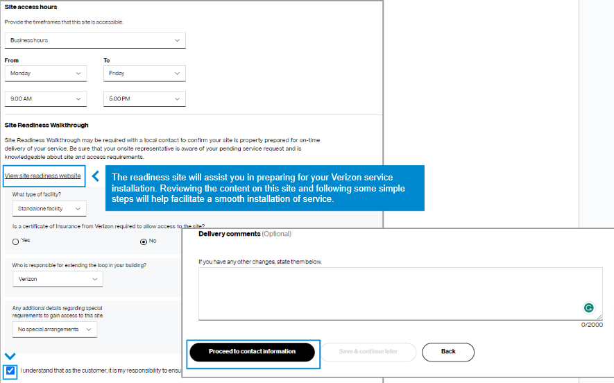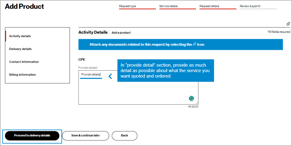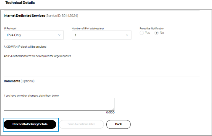 13. At the end of the technical details, enter any additional changes you have in the comments box. Click Proceed to Delivery Details.