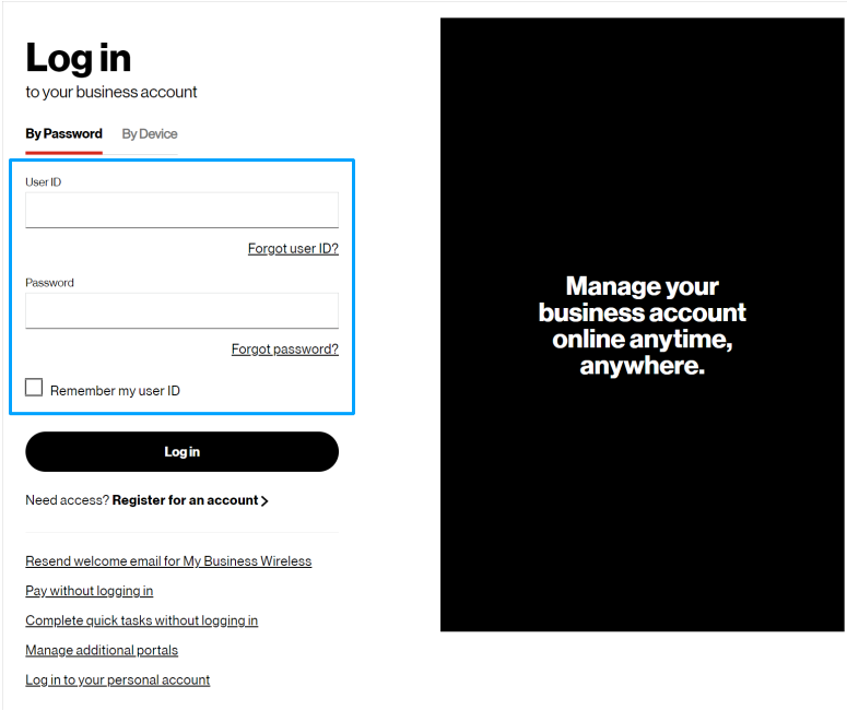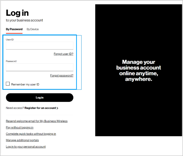 1. Log into the Verizon Enterprise Center with your user ID and password.