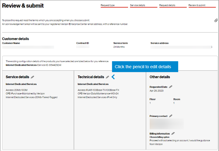 18. In the Review & submit step, scroll down the page to review all you information. Click on the pencil icon to edit a field.