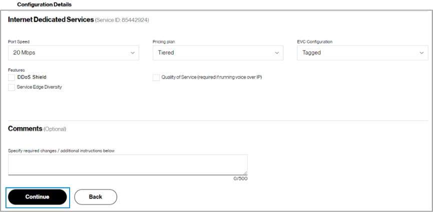 7. At the end of the configuration details, specify required changes and additional instructions in the comments section.