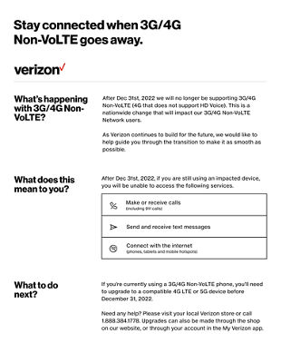 Starting Dec 31,2022 we no longer support 3G/4G Non-VoLTE. To keep your service active, upgrade your phone. Learn more.