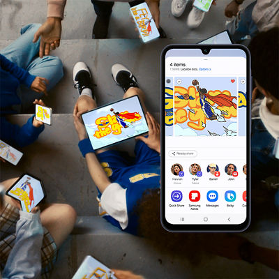 - Quick Share requires Galaxy smartphones and Galaxy tablets with Android OS version 10.0 (Q) and One UI 2.1 or above. Requires Wi-Fi and Bluetooth connection.